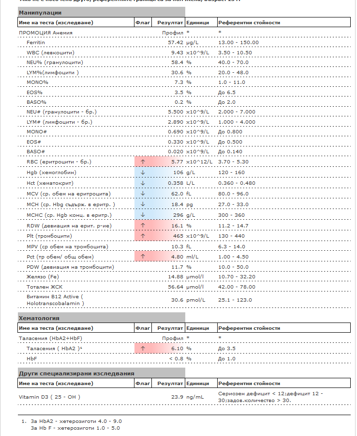 Достатъчно ли са за потвърждаване на кой вид Анемия имам?