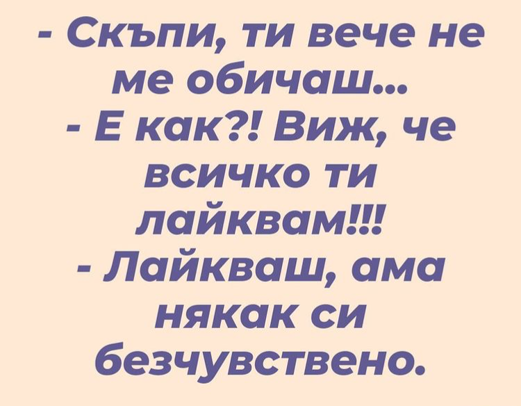 Отихоме..лекаря ми вика: искаш ли двоен чип, с който да станеш рептил и да живееш 200 го̀дини? И кат се сетих, че след 200 години мое сме останали само я и Лили Иванова му викам: Ба! Ти луд ли си бе? Обикновен чип си искам!
