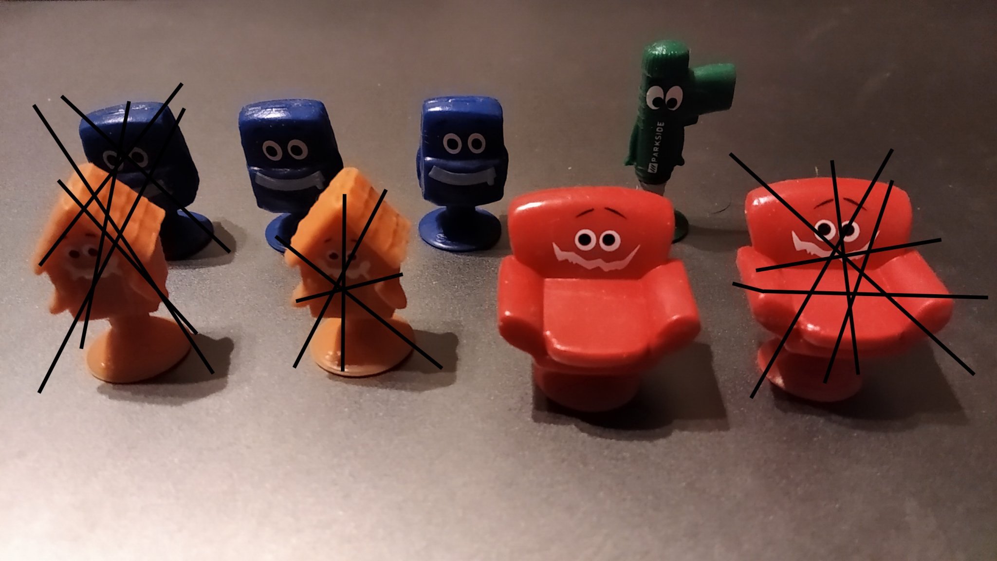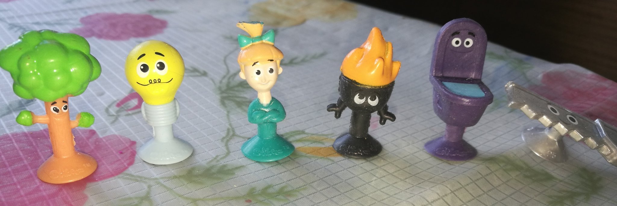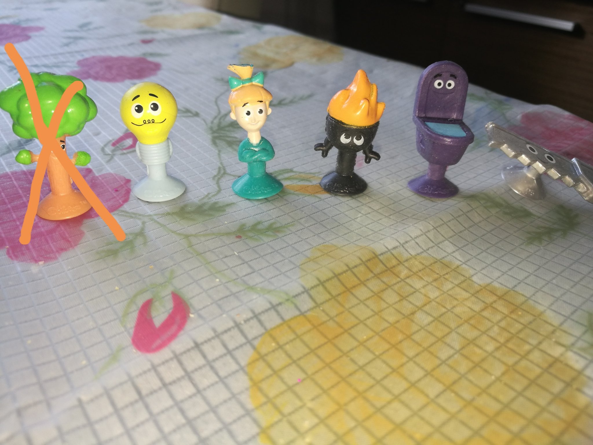 Търсим: Фифи(кучето), Фризи(фризера), Мечо(мечето), Микси(миксера), Пет(боксовата ръкавица), Мия(четката за зъби), Так(часовника), Лети(тоалетната чиния), Срез(триона).