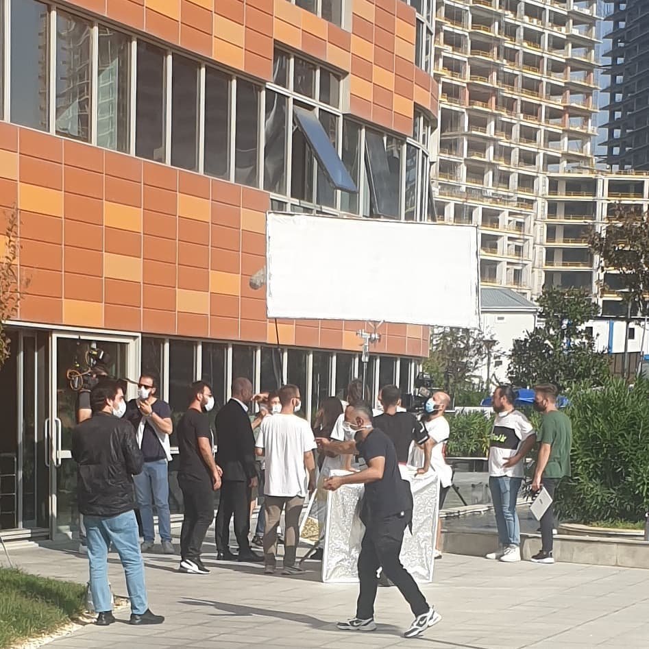 "Халит Ергенч и Аслъ Енвер на снимачната площадка на телевизионния сериал Babil.
