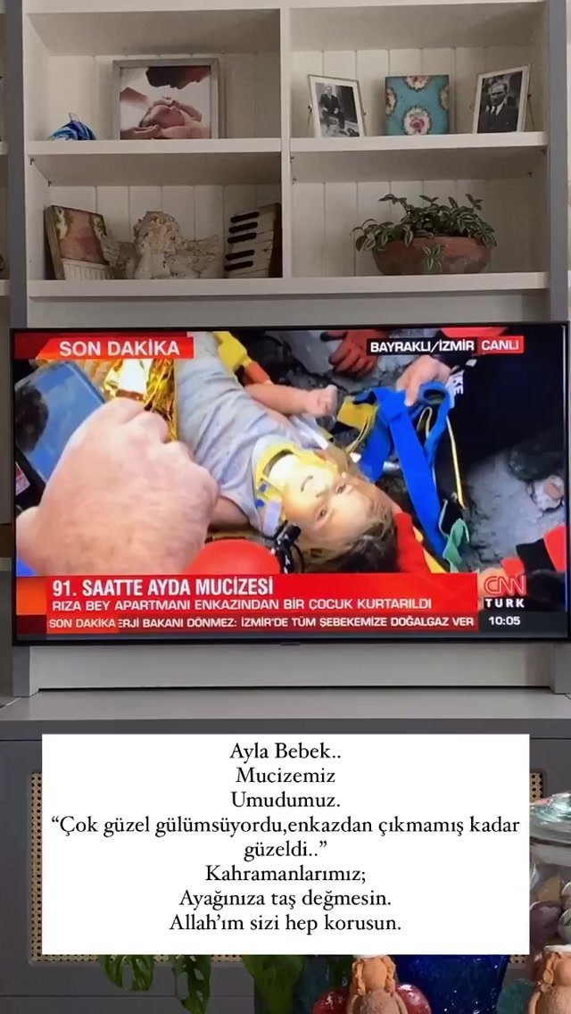 3-летняя Элиф Перинчек, которая находилась под обломками обрушившегося дома, была спасена с небольшими травмами. Эти моменты транслировались на экранах CNN Turk на всю страну. Спасатели, семья и все, кто находился в зоне крушения, пережили очень эмоциональные моменты. Президент AFAD Мехмет Гюллюоглу сказал: «Аллах, спасибо тебе тысячи раз. Мы нашли нашу малышку Элиф живой». Бабушка и дедушка Элиф плакали, говоря: «Наши молитвы приняты».