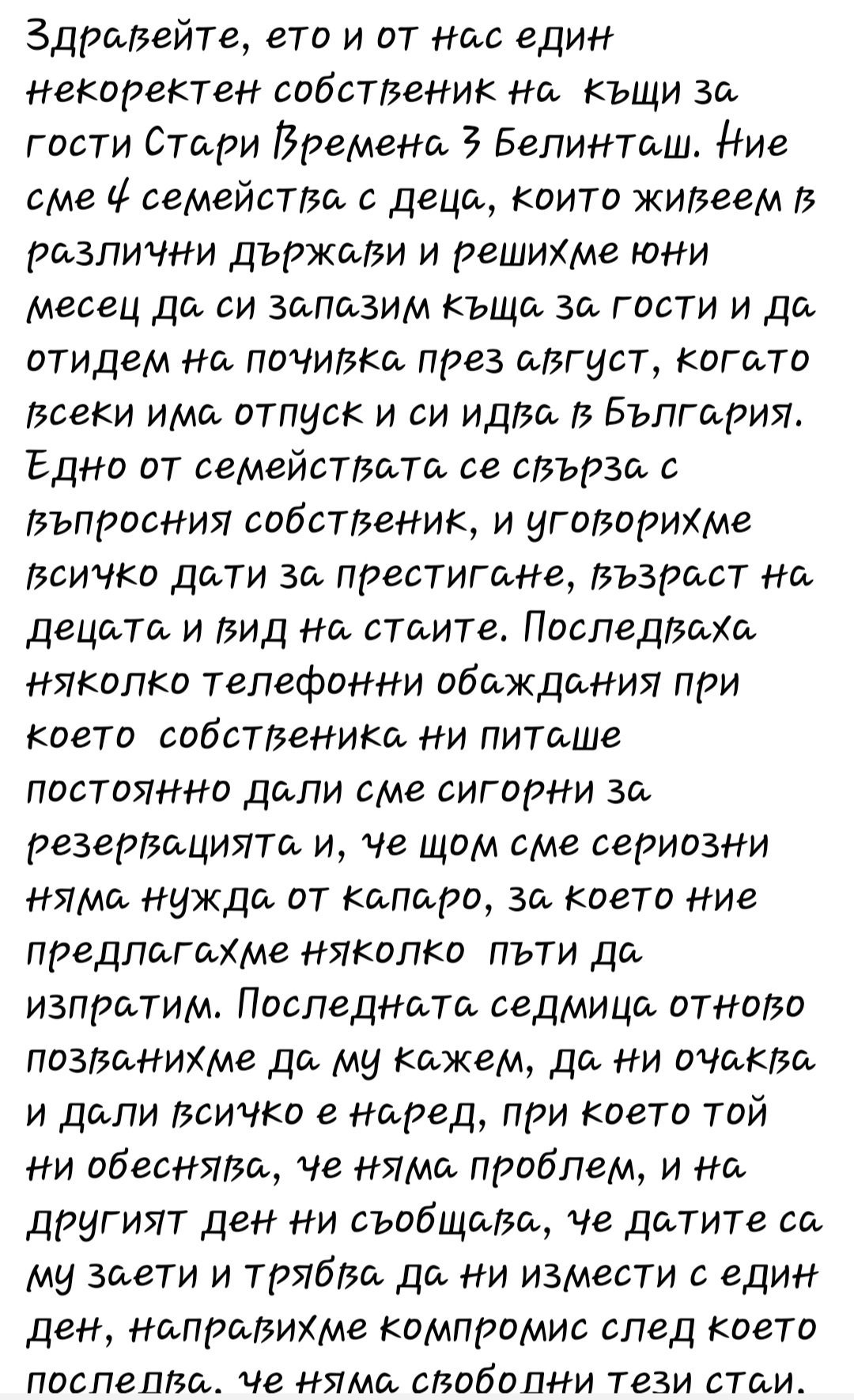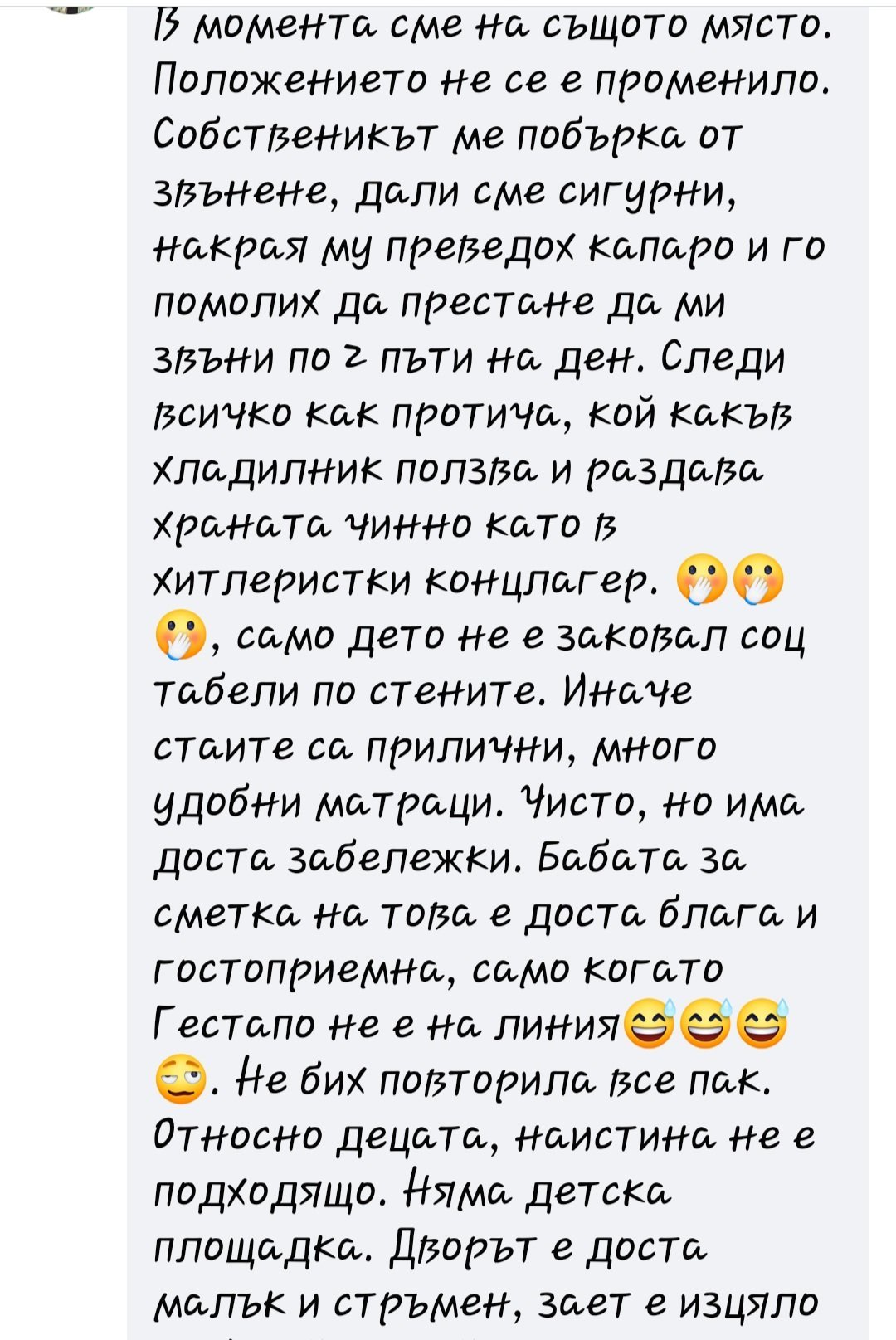 Не вярвам в близките години отново да резервирам място за спане у нас през него. Ако някой не благоволи да си вдигне телефона и да ми обърне внимание, остава за негово сметка. Алтернативи винаги се намират. А и ние отсяда му обикновено в къщи за гости и бунгала, които не са регистрирани в платформата, защото на практика тя е удобна за чужденци.