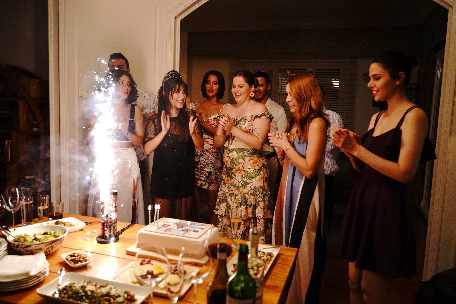 не разбрах това кадър от филма ли е или празнуват нещо извън кадър . Те снимките на филма приключиха.