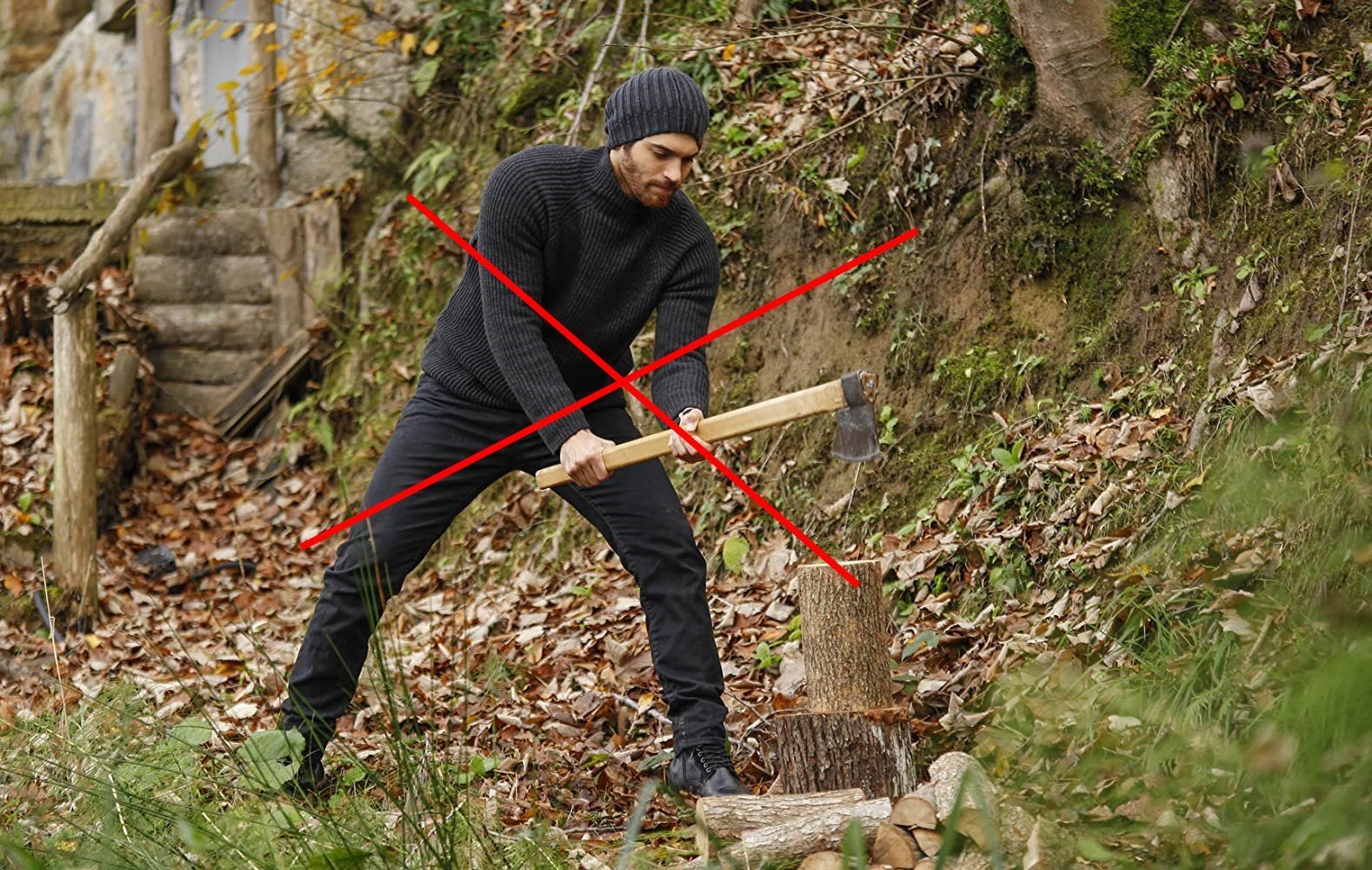 5. Много внимавайте докато замахвате с брадвата. Наоколо най-вероятно ще има женски крясъци, припаднали фенки и сирени на 112. Аз един път се разсеях и вместо дървото, уцелих себе си и вижте какъв белег ми остана
