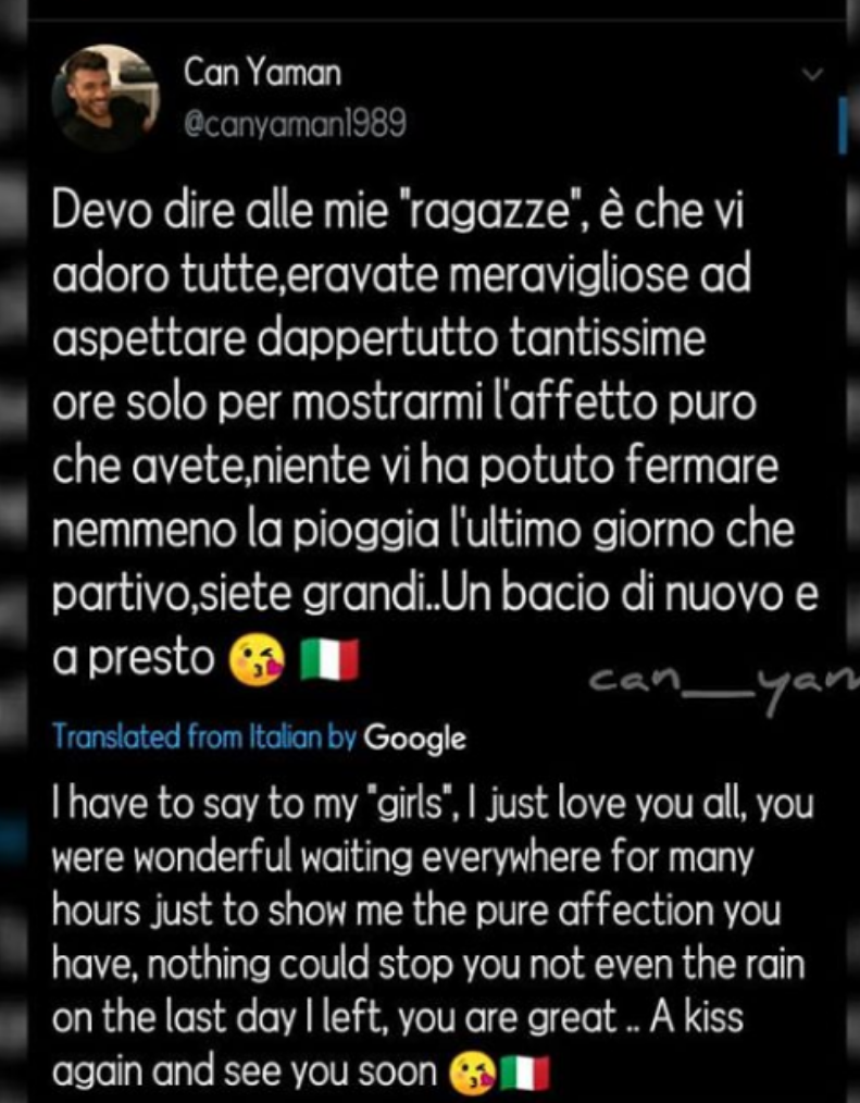 Но пък Джан се включи в Туитър с обръщение към италианските си фенки.