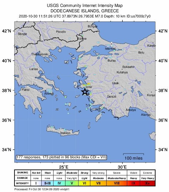 Силният трус с магнитуд 7 по Рихтер в Егейско море стана в 13,51 ч. с епицентър в морето на 19 км северозападно от остров Самос. Епицентърът е бил на дълбочина от 10 км. Земетресението е било почувствано и в Атина и Истанбул, а също така и в България.