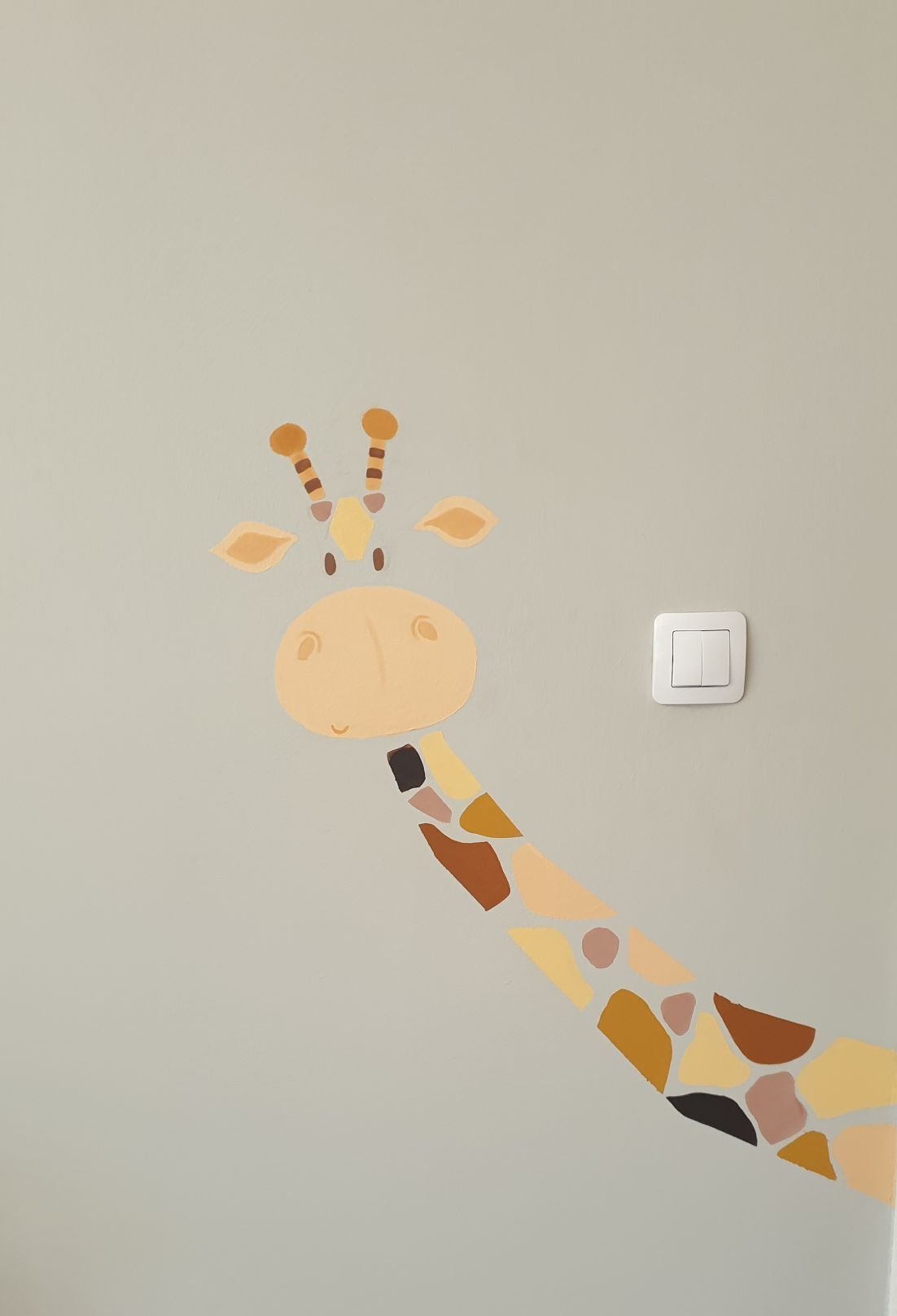 Всичко е измерено и направено на ръка. Къщите бяха голям зор да са равни и с прави стени, много мерене падна. После ги разграфихме с тиксо и боядисахме, а жирафа го нарисувах free hand. Водих се от картинка, направих го с молив и след това с боя.
