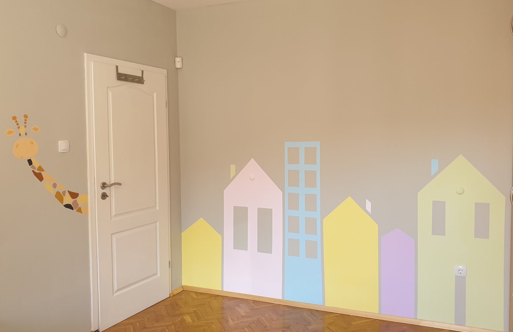 Момичета, да се похваля, декорацията на детската стая е почти готова. Приключих с рисуването, много съм щастлива как се получи.