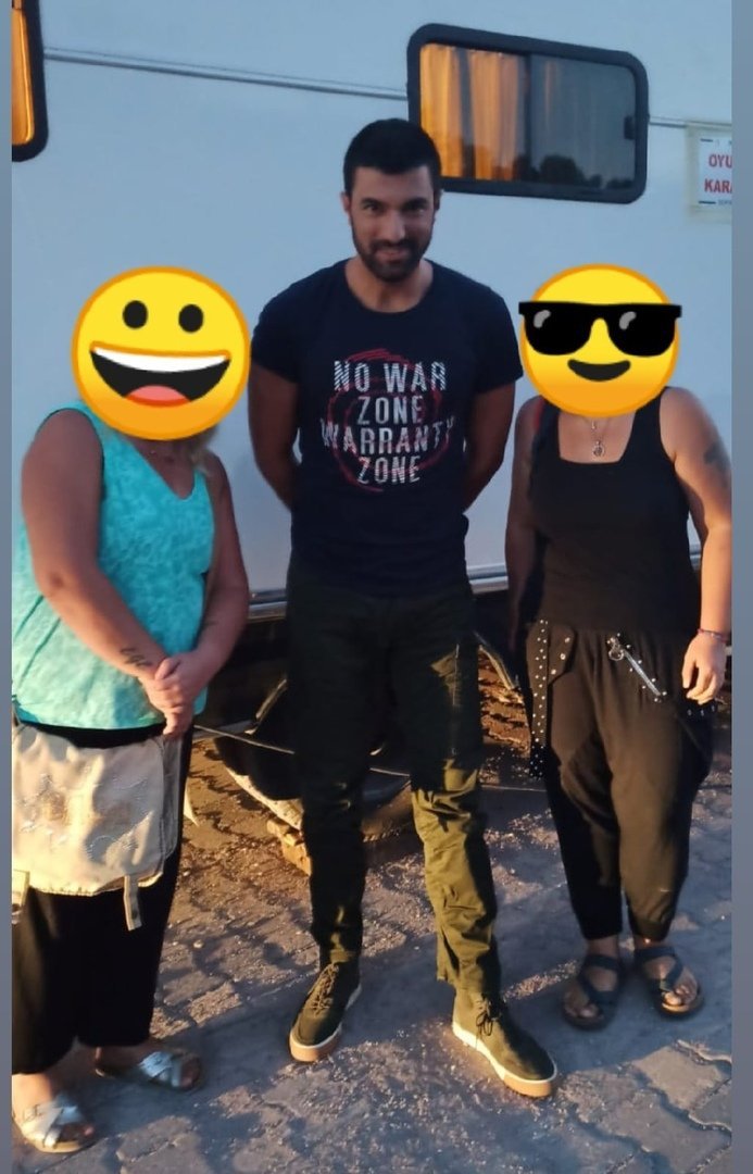 Докато чакали Енгин, тя излязла от караваната си, но била с костюм и не могли да, се снимат с нея