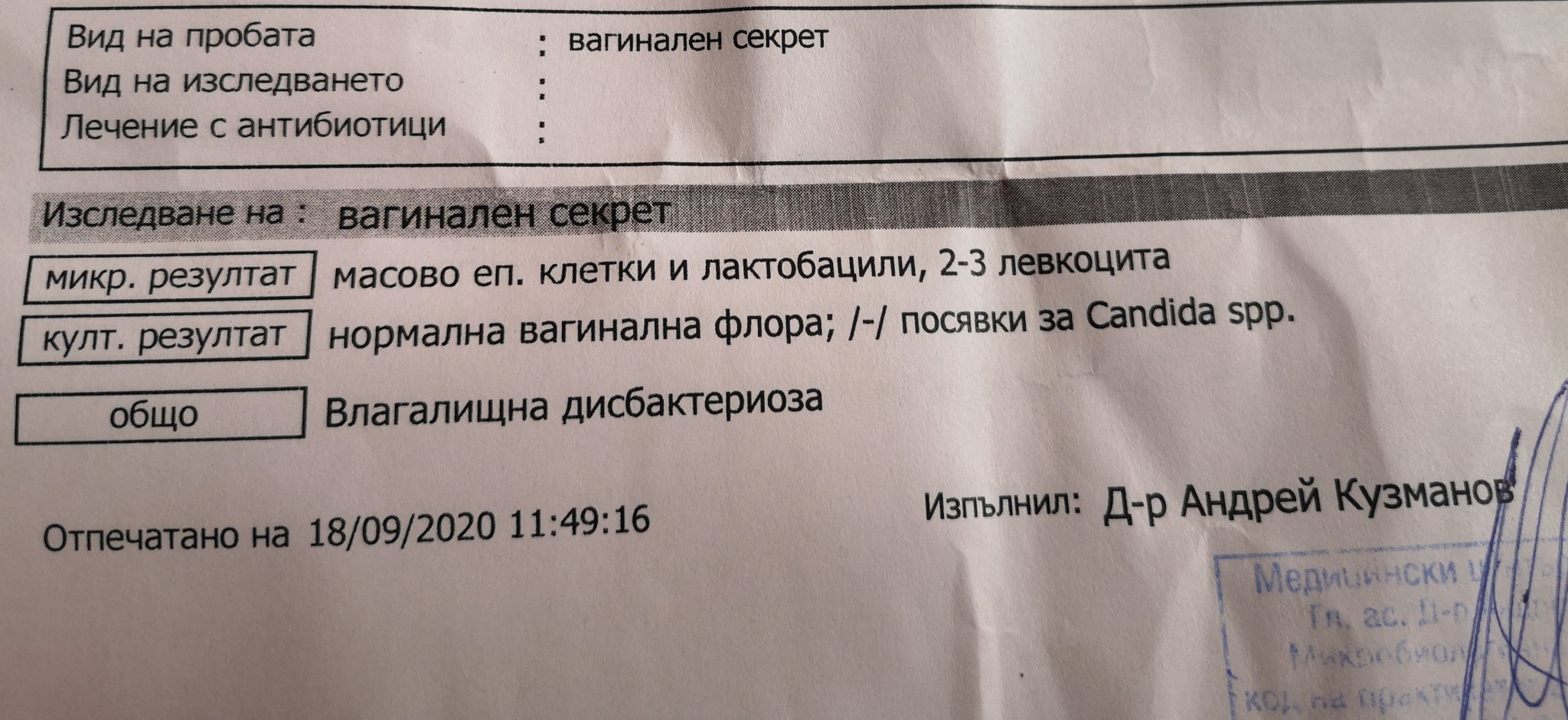 . Трябваше да изчакаме няколко месеца за нови опити, ама аз не съм се отървала от това чудо и вече, дори ме боли при секс. Отчаяна съм.. Ходих през тези месеци на други гинеколози, на кожно - венерически, на микробиолог, който уж бил царя на гъбите (все еднакви изследвания ми правиха, но в различни лаборатории и все ми излизаха отрицателни за всичко). Във Варна ходих при Бейлерян и там излезе кандида албиканс. 14 дни пих клотримазол, мазах и глобули и нищо, даже по време на лечението имах дискомфорт. След нея ходих при царя на гъбите, Кузманов микробиолог, който каза нищо ти няма - диета и спорт. Почнах диета и спорт и даже и секс не правих, поради други причини и пак излезе тази гад. Просто съм отчаяна и не вярвам на доктори. Малко дълго стана, но сега се лекувам сама и пак греда. Полижинакс 6 бр., дойде ми цикъла, след него слагах мед на топче няколко дни и пак тази еднократната глобула + микомакс три броя на 1,3 и 7 ден. Идеята ми беше да пия микомакс на 1 ден от цикъла, в продължение на 6 месеца, защото много жени така са се излекували четох. Ама аз още гъбите не мога да разкарам.. Отделно като ги разкарам си купих за първи път вагинален пробиотик Гинофлус, ама не знам има ли смисъл сега от него като те си стоят там. И една гъба Корилус или нещо такова за имунната система ми препоръча аптекарката. Почнах и нея от няколко дни, орален пробиотик пия от време на време,ще се поправя и ще го пия по-често. Дайте съвет, моля ви какво да правя, защото искаме бебе, а гъбите си стоят там от почти година, а времето си минава.. Много ви благодаря!