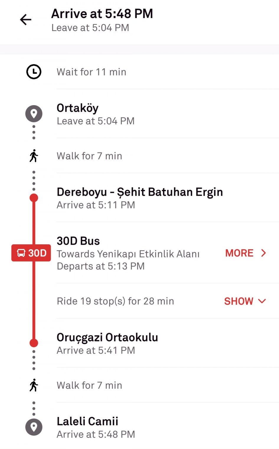 Маршрутът до Ортакьой, описан по-горе, е времеемък и ми се струва подходящ за n-то пътуване, което е и по-продължително. Неведнъж е коментирано, че части от трасетата покрай Босфора меко казано не са приятни за пешеходно минаване. Да, има участъци, подходящи за романтични разходки, но далеч не са всички.