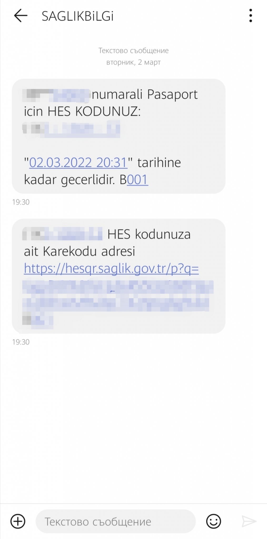 Да кажа и аз за хес кода. Мъжът ми изпрати от неговия телефон от виваком и получи веднага ХЕС код. Аз пратих от моя А1 и не се получи. След това той изпрати от неговия номер моите данни и пак не получих кода. Незнам от какво зависи но не е заради оператора. После ми помогнаха да получа кода от турски тел.номер и ми го пратиха по ватсап. Само да кажа, че в хотела не ми помогнаха. Като искали код за някой друг техният код се изтривал. 😃