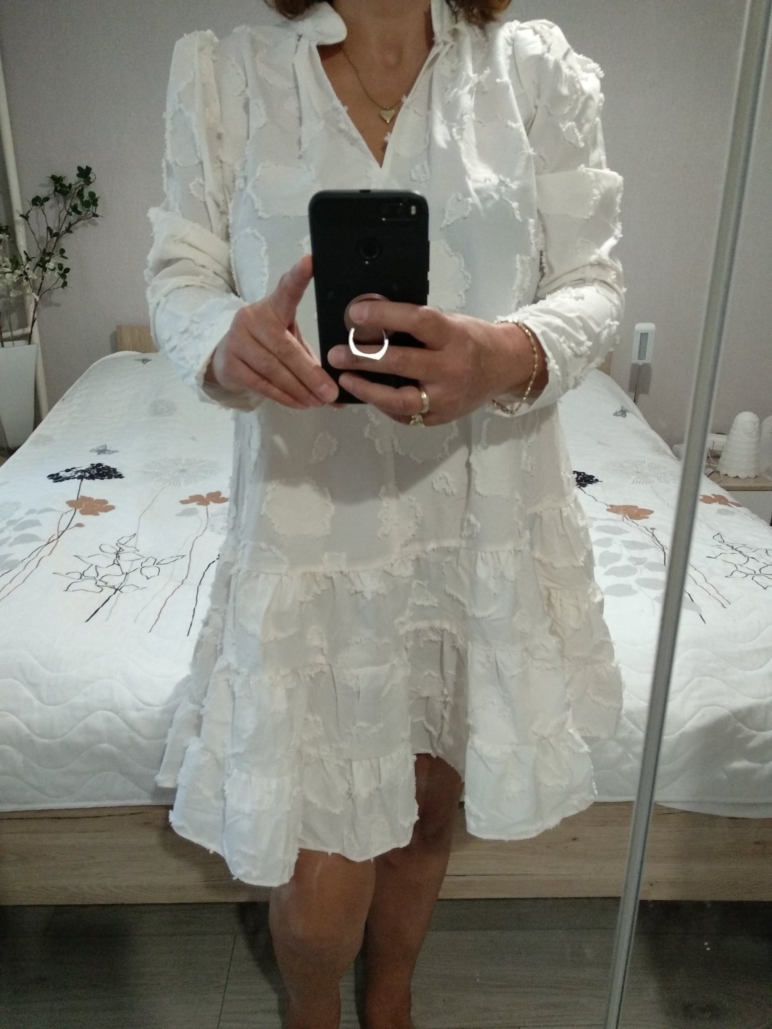 И аз получих бялата рокля, но нещо ръкавите са ми леко теснеещи. Не знам дали да поръчам S, защото пък си ми е наред на бюста.