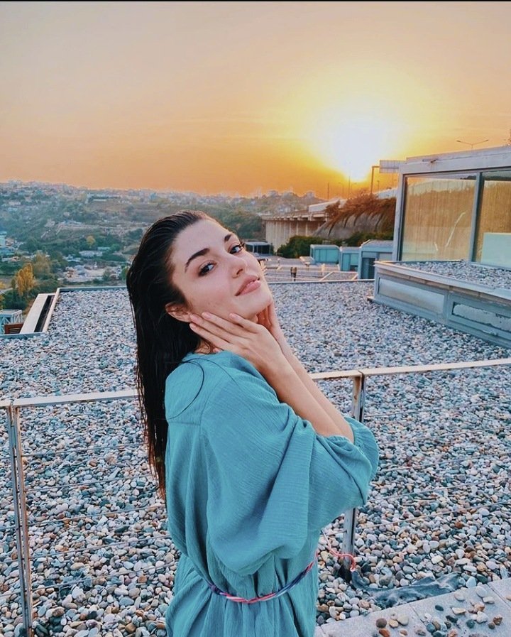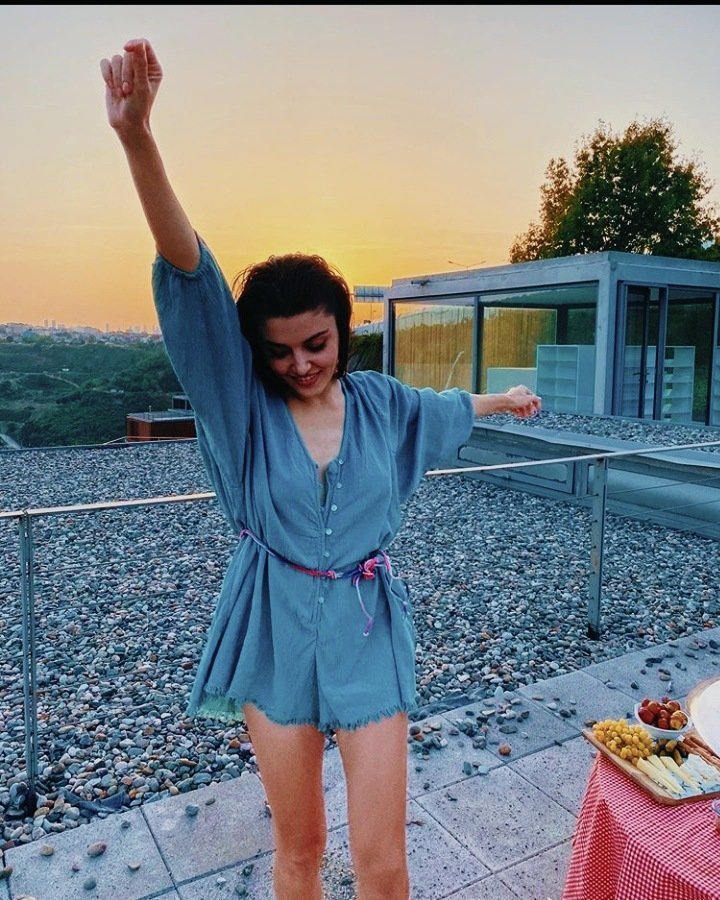 Не е ясно с кого пие виното си красивата Ханде на тази тераса с невероятна гледка, но е поставила хаштаг под снимките си в Instagram:  #myhappyhour