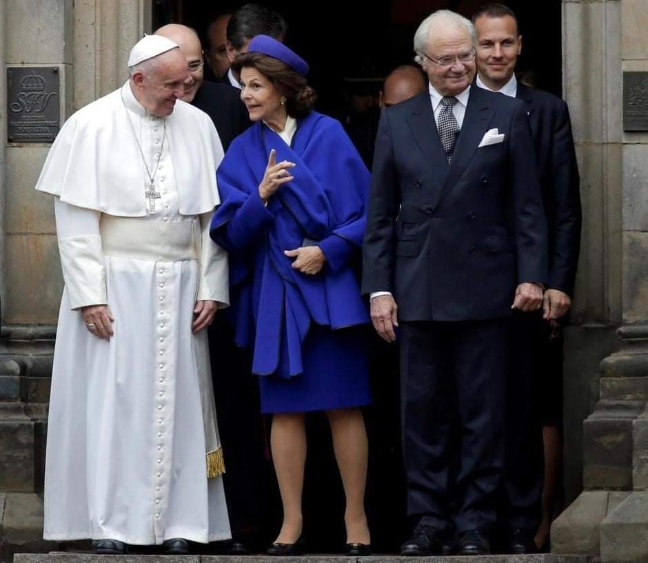 Папа Франциск в Швеция с крал Карл Густав и Кралица Силвия