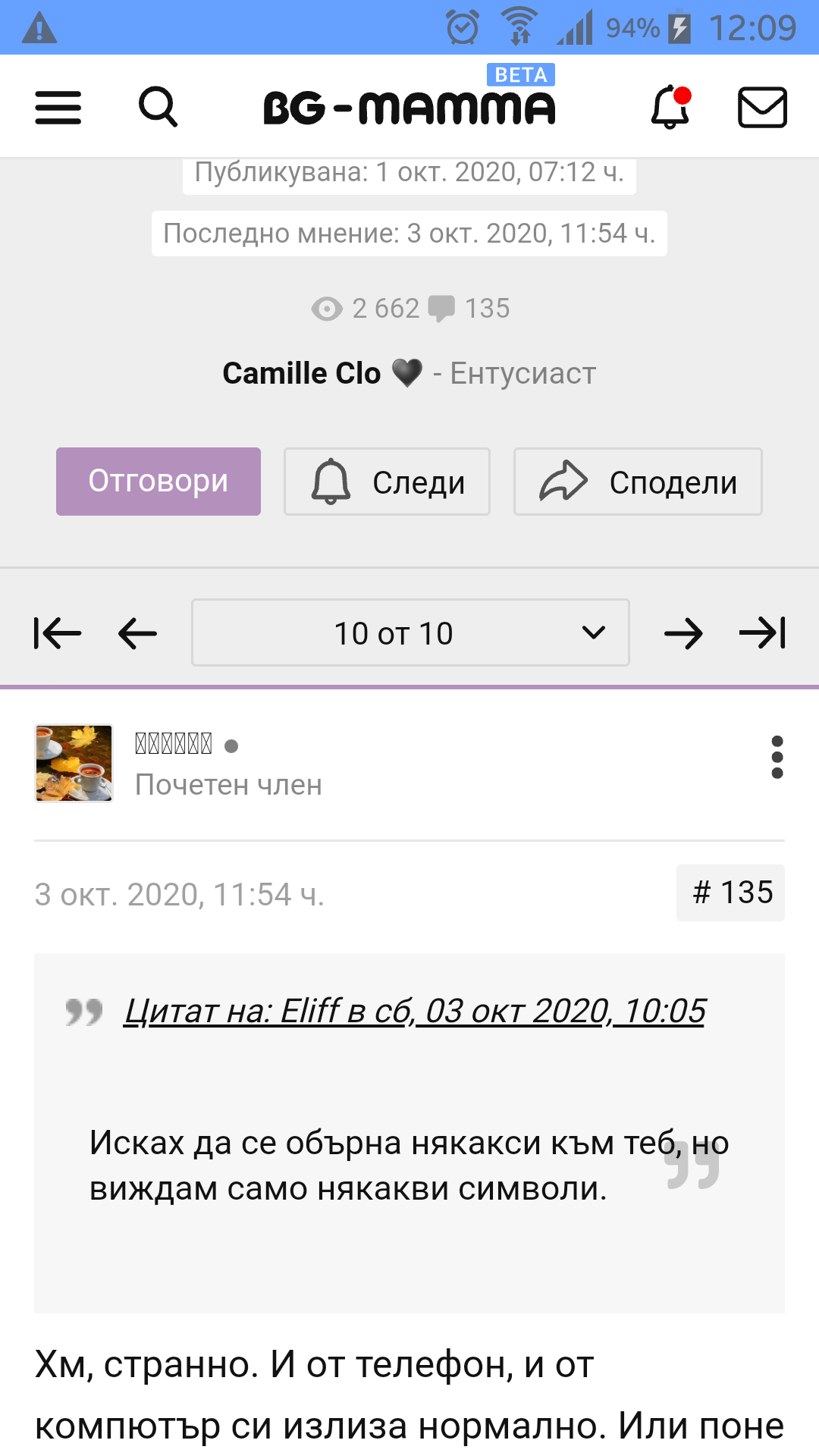 Хм, странно. И от телефон, и от компютър си излиза нормално. Или поне аз го виждам, но и другите не са казали, че не се чете.  YanaDG е никът ми.