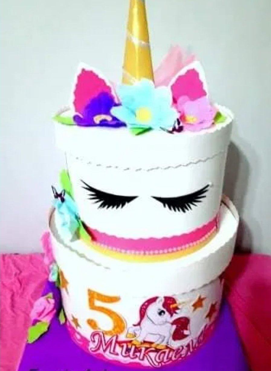 Ени, сега има по- мързелив вариант на картонени торти- една кутия украсяваш със стикери и вътре вързопчета с лакомства