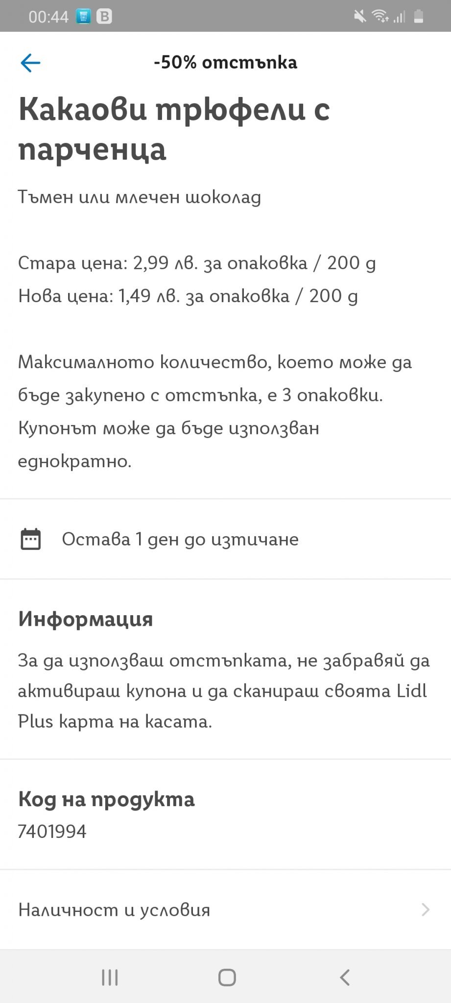 Нали точно това имахме предвид с Фортуна, нямаше нито редовни, нито намалени цени за тези продукти от този конкретен купон. Grinning Аз също видях флагчетата на втори-трети път чак, не са толкова видими, ако не ги търси човек с поглед. Не възразявам да стои редовната цена с голям шрифт, както и досега. Само изказвам мнение, че може да се добави намалената цена с мъничък някъде отстрани, като до нея пише Лидл Плюс цена или нещо такова. Никой няма да е подведен или ощетен.