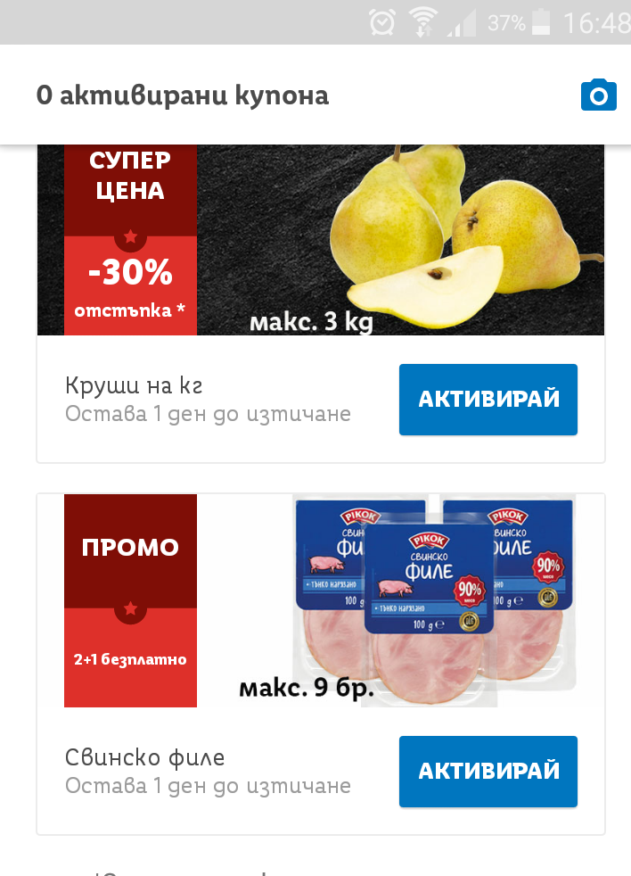 Купоните трябва да бъдат активирани предварително и са валидни за едно пазаруване до момента на използването им в рамките на определения срок. Офертите се прилагат многократно в рамките на срока им на валидност, като при една покупка могат да бъдат закупени до предварително определен брой килограми/единици на офертната цена.