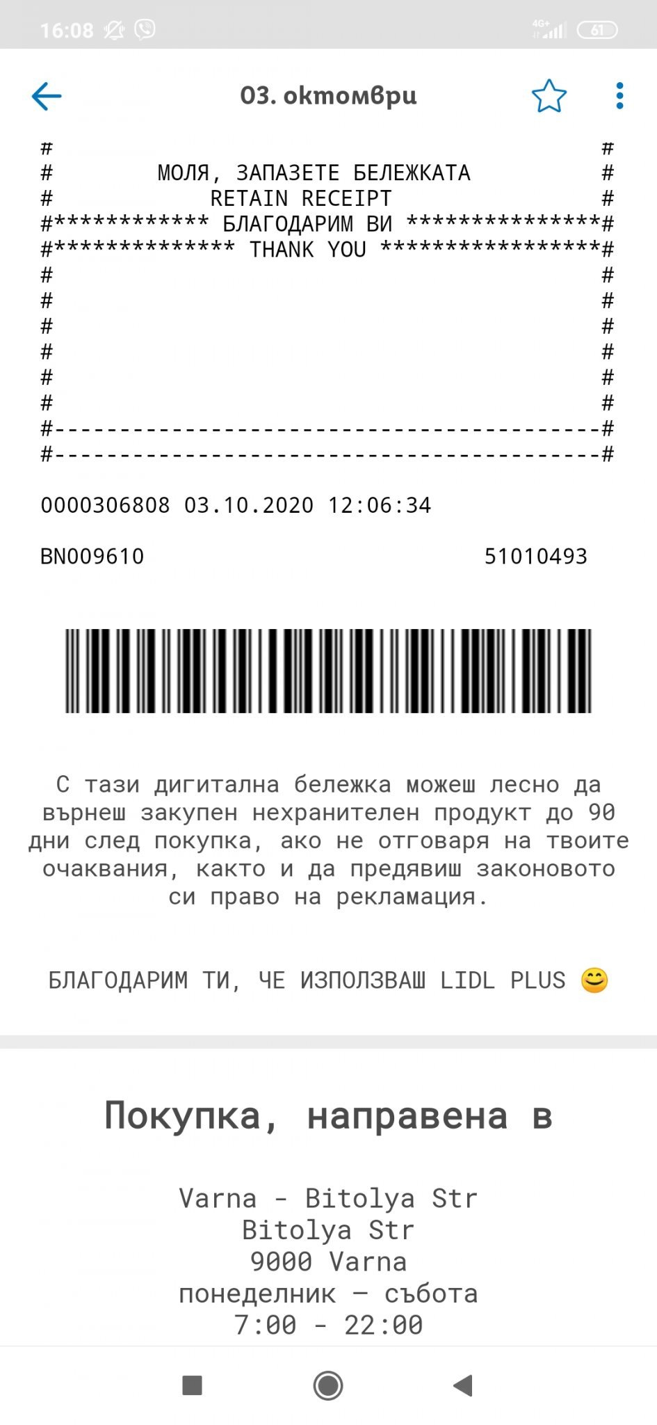 Днес пазарувах от единия Лидъл (от два възможни за сега), в който почти няма wifi и е цяла мъка, не можах да си видя активирания купон и съответно не купих точно този продукт, а подобен. Както и да е не е голям проблем, та да си знаете, че при слаб интернет в магазина може и да не можете да си направите справка в Lidl Plus.