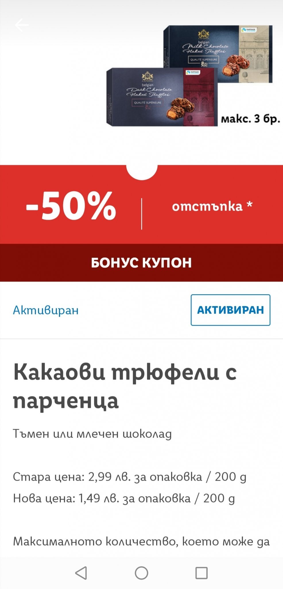 Мисля, че първо трябва да се активира като купон, вземаш стоката, сканираш на каса кода, трябва да излезе после приспадане на сумата в сметката.