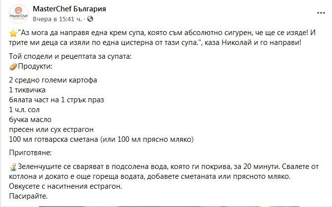 Да не си замислила крем-супата на Файчето да правиш и ти? Wink