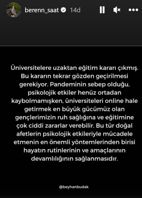 Берен - Аз съм тази, която трябва да ти благодаря. Благодаря на Арабския свят, че ни гледа и ни обича. Надявам се за в бъдеще вие ще следите нови турски сериали или филми и ще ги гледате със същата тази страст.