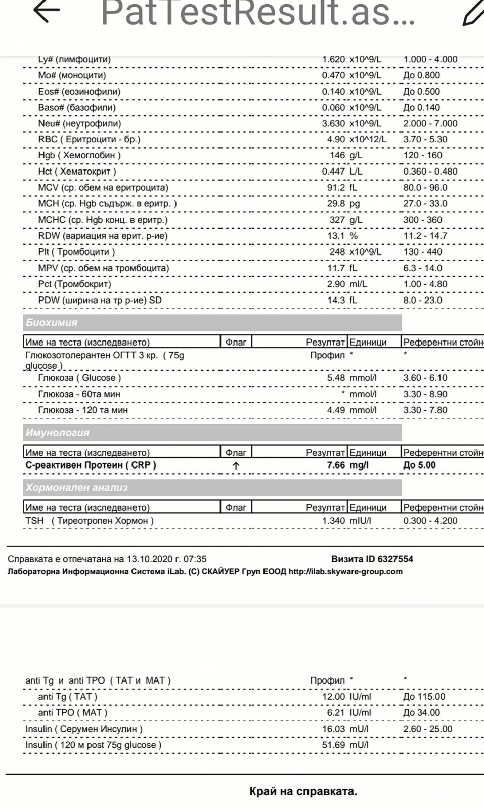 stelichka1, не само инсулина, но и глюкозата ти е много висока. Спешно трябва да вземеш мерки, ако не искаш съвсем скоро да се обзаведеш с диагноза диабет тип 2.