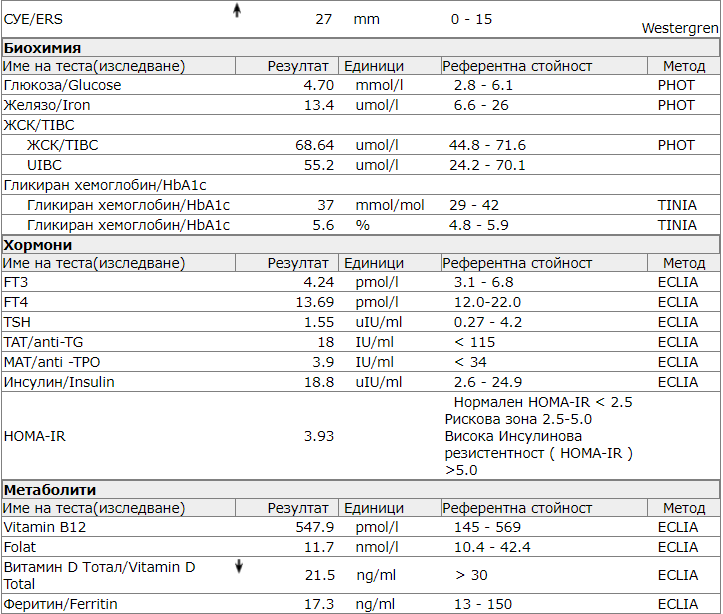 Общо взето, последните 2 години напълнях доста, 72кг съм. Като цяло не се чувствам добре, изморена съм постоянно, спи ми се и  заради това си пуснах и изследванията.