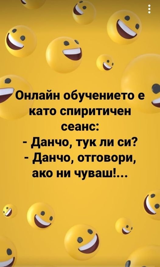 Онлайн обучението върви добре, ще видим как и ще я "тестуват" днес по БЕЛ, от утре мисля да се завръща присъствено в редиците. Озадачи ме класната, която иска бележка от личния лекар /така казала на щерката/, а всъщност вчера и днес тя присъства в часовете, само в понеделник липсваше, и защо имам спомен, че класният ръководител можеше да извинява отсъствията до 3 дни....Ще говоря днес с нея, за да знам в бъдеще как да процедирам.
