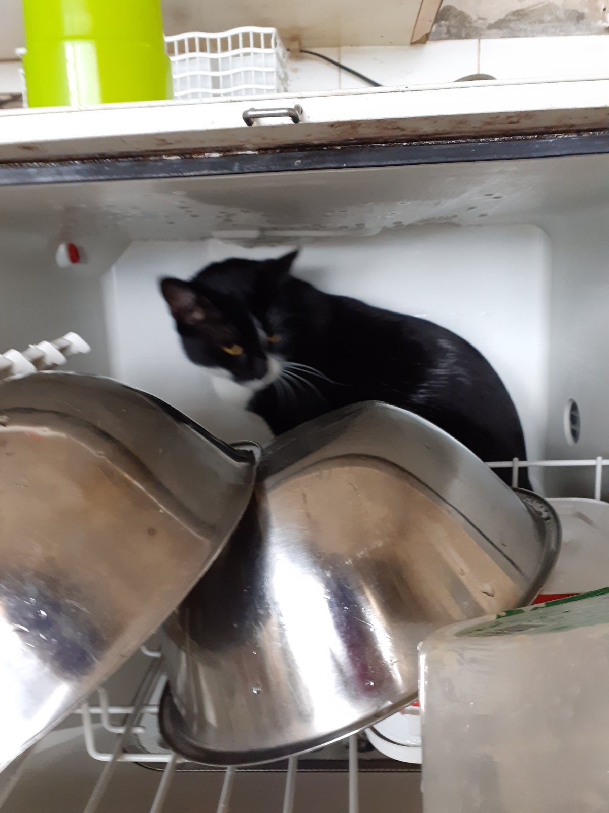 Прави се на много кротък, ама е абсолютен дивак. Правих бисквитки, оставих ги на масата и когато и да се обърна бисквитките намаляват, а никой не ги яде. А той ги събарял и играе с тях и завира в къщичката им 🙄 сваля дреха по дреха от сушилката и влачи из цялата къща, тази нощ извадил половината боклуци от плика в кухянта 🤪 вчера скочи в една чиния с мусака от нищото и разнесе мусакичкови лапички по бялата покривка аааааа 😁