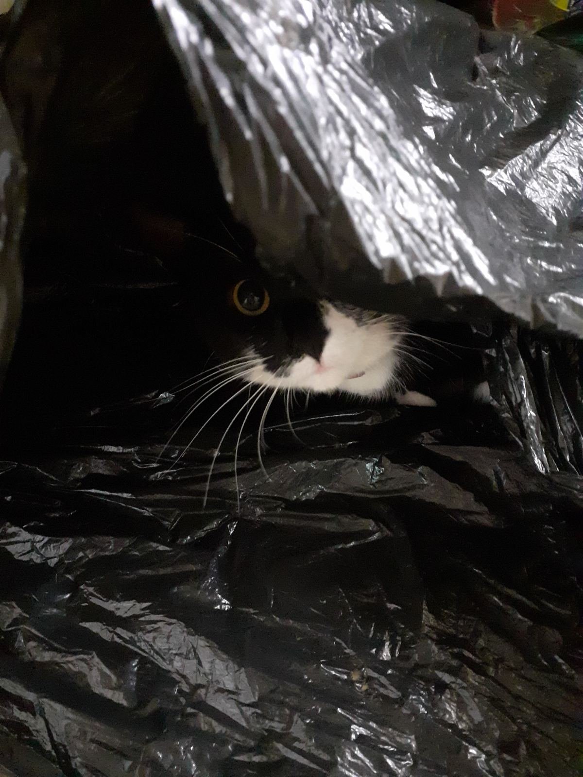 Това е черен чувал за боклук. Камерата го прави сив. Трябва и боклука да се изхвърли.