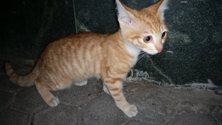 Подхвърлили са ни котенце. Явно някой е видял, че ги храним и го е оставил. Живеем на много оживен булевард с непрекъснато паркиращи коли, които се сменят през половин - 1 час (синя зона е). Едва ли ще оцелее дълго. Разпитайте дали някой не търси оранжево котенце. Страхува се от другите котки, а на хора се доверява. Дъщеря ми го погали, а като се появи Лудия, се крие зад краката ѝ. Все пак баткото се уплаши повече и избяга. Simple Smile