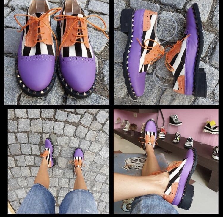 Едни обущетата в лилаво за едно самотно палто в същия цвят.