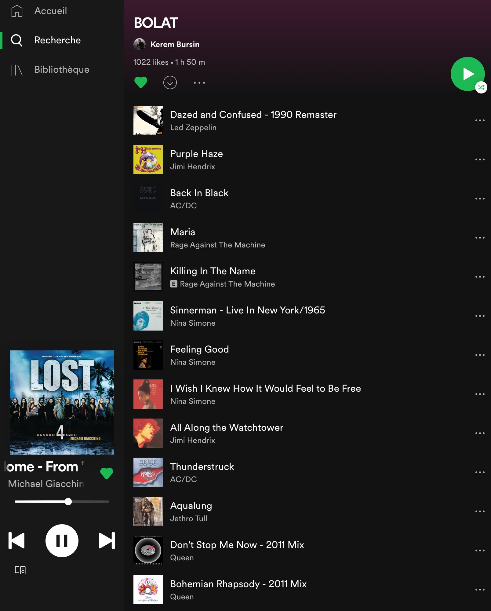 🌼 И за лека нощ, направих един скрийншот на плейлистата на Керем за Серкан в Spotify. Има доста оригинални хрумвания (Sinnerman,Thunderstruck, I want to break free etc.) и не съвсем (Clocks, часовници)😂.