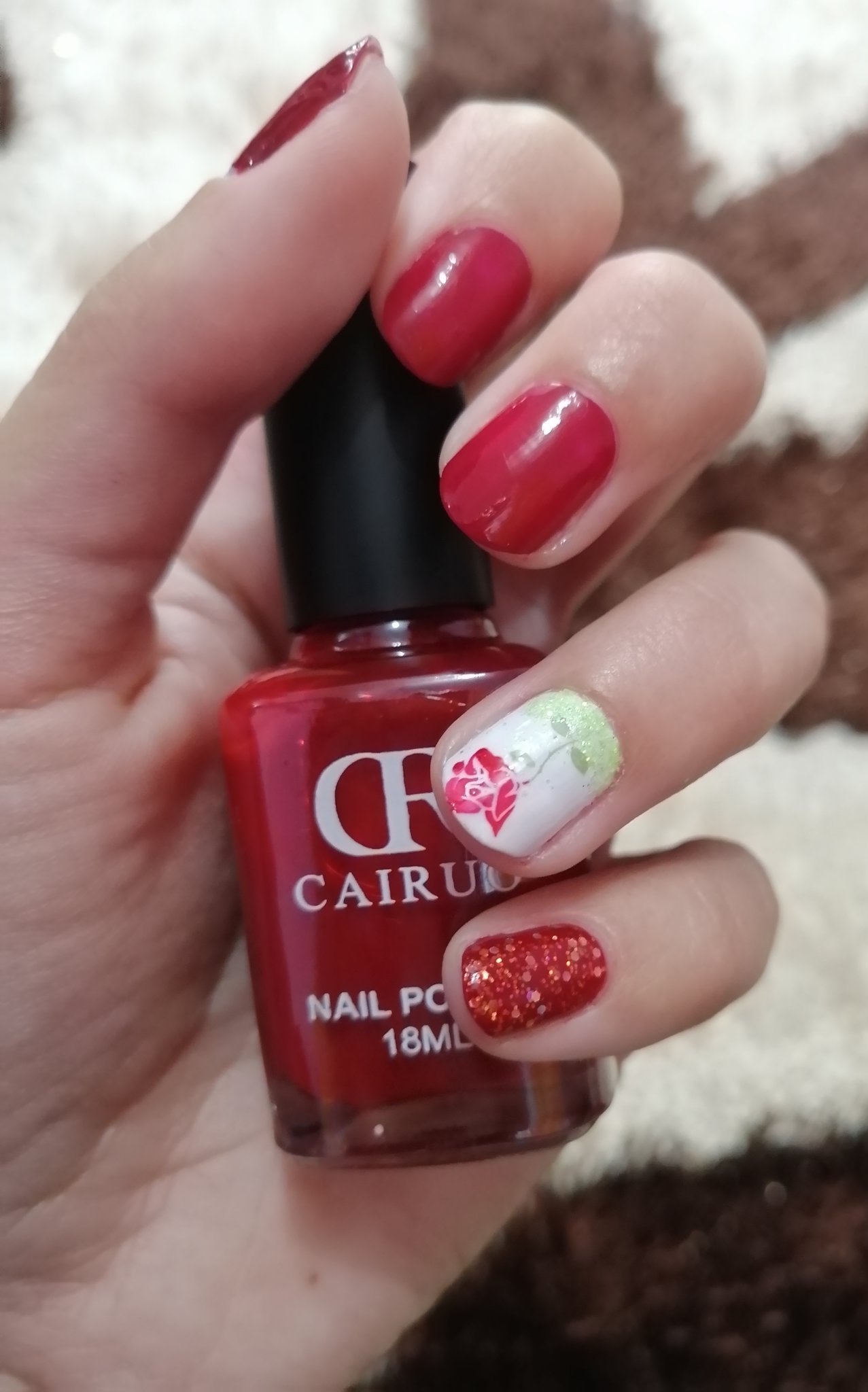 Не ми хареса нещо вчерашния маникюр, и днес реших да направя още един опит за червен маникюр, този път мисля, че е успешен Simple Smile
