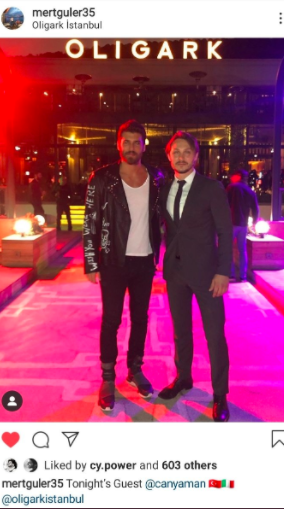 Mert Gürel -  един от мениджърите на мястото "Oligark" качи тази снимка с Can Yaman в официалния си IG, с коментар „Гостът тази вечер“. Да споменем, че на "Oligark" в Истанбул му е присъдена тази вечер „награда за най-добро място“ през 2020 г. на церемонията по награждаването на Fashion Tv (Moda Ödüllerie)