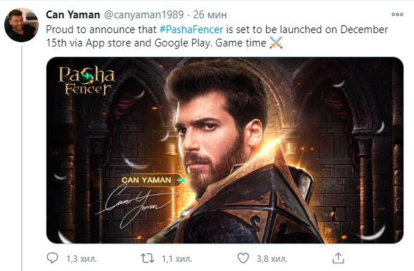 "Горд съм да съобщя това, Pasha Fencer, трябва да стартира на 15 декември, чрез App Store и Google Play. Време за игра"