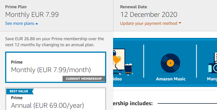 Нa 13.10 активирах прайма, вече е минало 30дни... за един месец ли ще ми удържат или (8E/мес)?