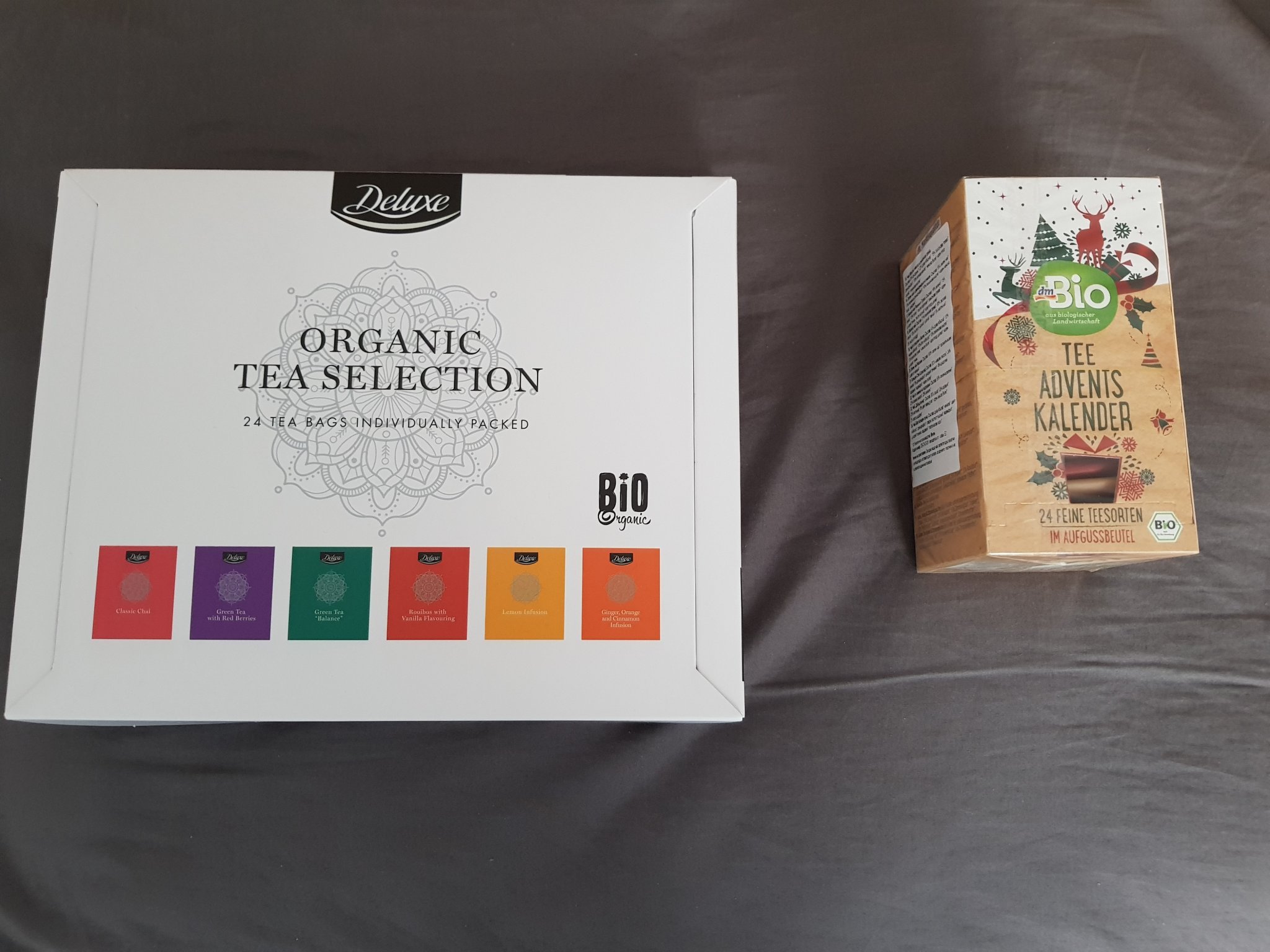 Знам, че не сме в темата за подаръци, но понеже се обсъждаха коледни календари с чай - взех от dm, обаче малко невзрачно ми изглеждат, големината е колкото на обикновена кутия с чай на пакетчета. Днес обаче са пуснали коледни неща в Лидл, включително декорация. Не са кой знае какво за сега, поне аз нищо не си харесах, но има хубава кутия с 24 пакетчета чай. Пак е био като на dm, опаковката не е оформена като календар, но ми се стори по-подходяща за целта.