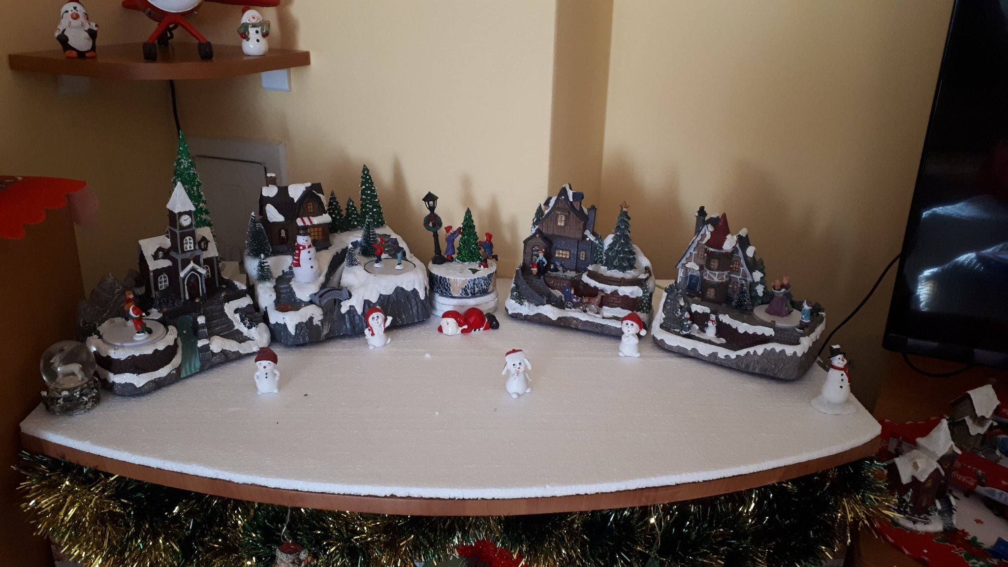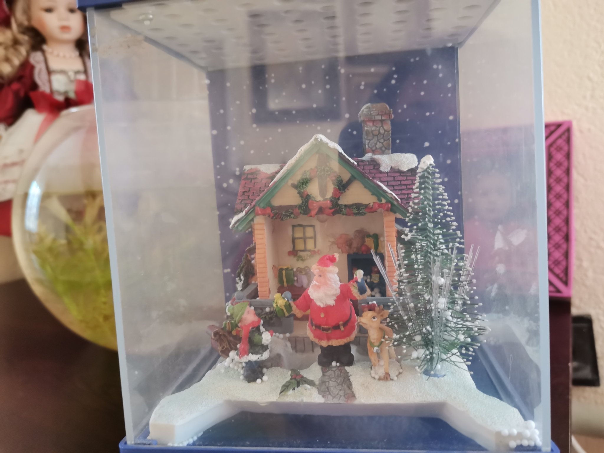 Сценката е готина и е на батерии, но не тръгва. Стара играчка е на братовчедка ми, леля ми я донесе на малката. Много е хубава, но просто не работи. Иначе гледа явно е имало и музика и снега се въртял.