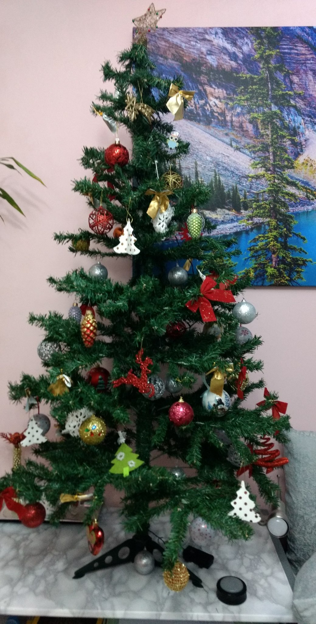 От мен бяло-розова елха.По-късно ще покажа и какво измислих за балкона (там за пръв път слагам нещо) и още няколко неща.