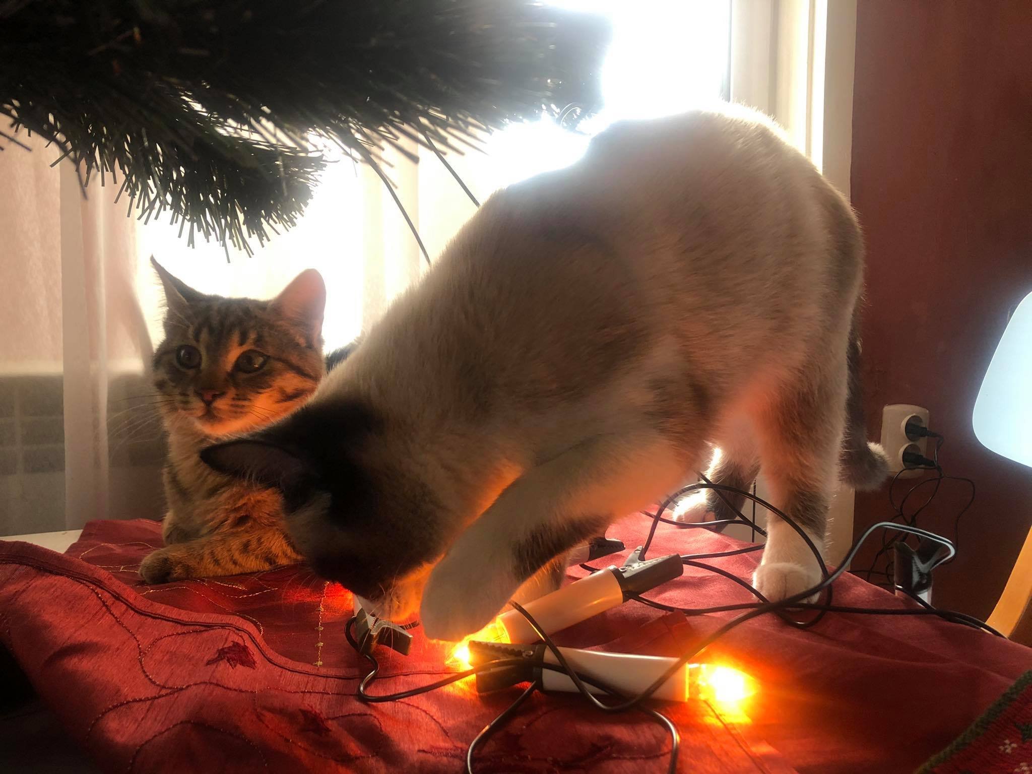 Аз чакам тези двамката да свикнат с елхата и тогава ще слагам украса.