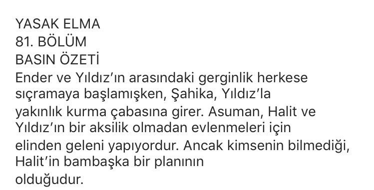 Разривът между Ендер и Йълдъз засяга всички. Шахика ще се опита да се доближи до Йълдъз. Асуман прави всичко, за да могат Халит и Йълдъз да се оженят възможно най-скоро, но Халит има свой собствен план, за който никой не знае ...