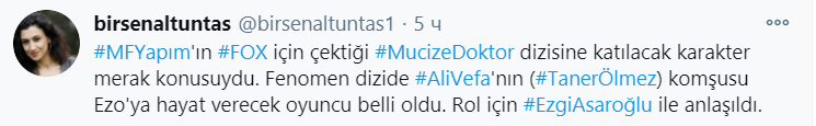 Благодаря за инфото.Аз съм гледала Езги в ''Моят живот'',хареса ми.И е ниска като Севда.В сериала ролята й ще на Езо,новата съседка на Али Вефа.