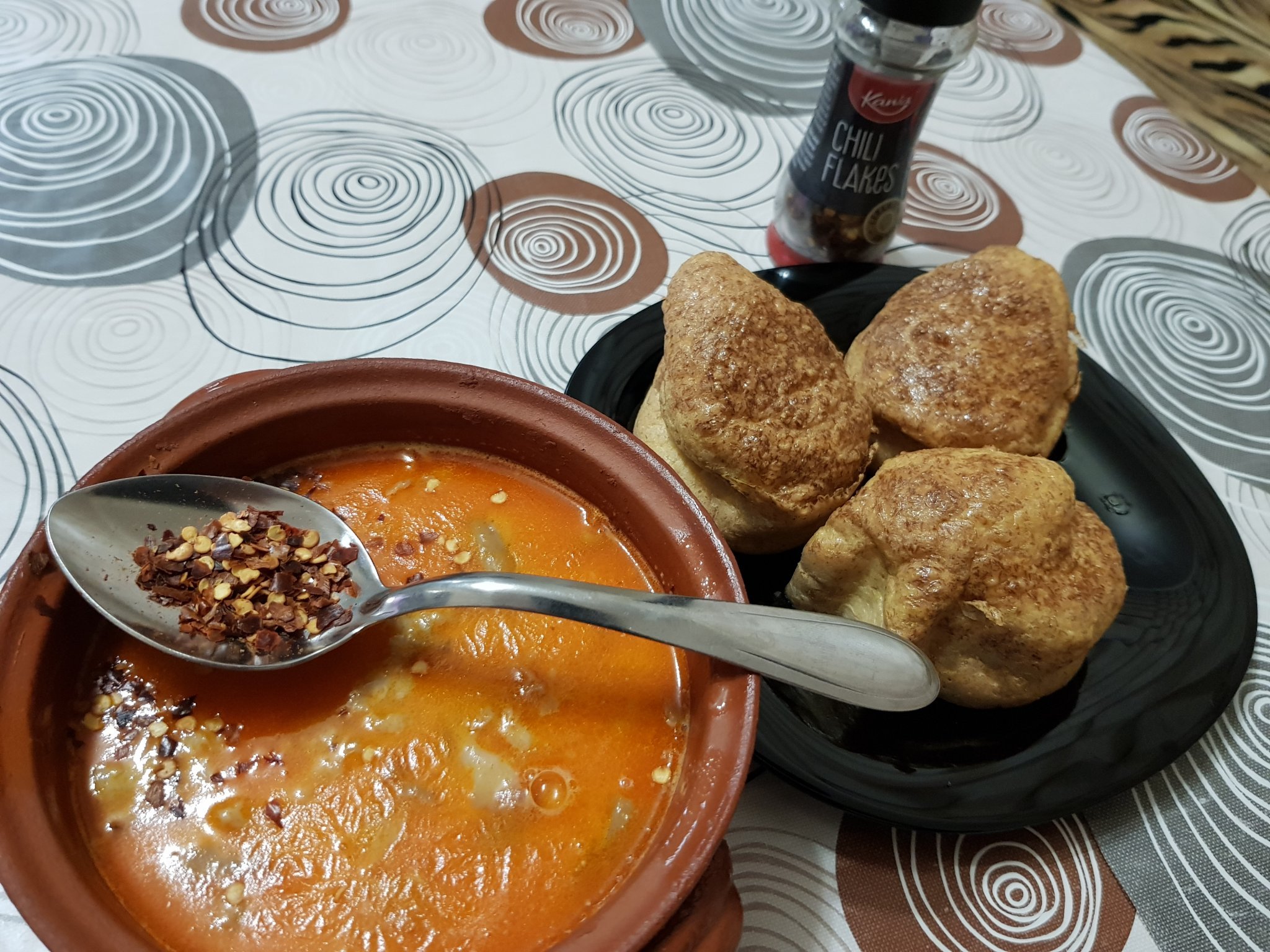 Супа пача и хляб с хуск. Този път разпределих сместа в детски формички за мъфини, за да може, който го обърне да има изненада (Не че има кой у нас, ама...)