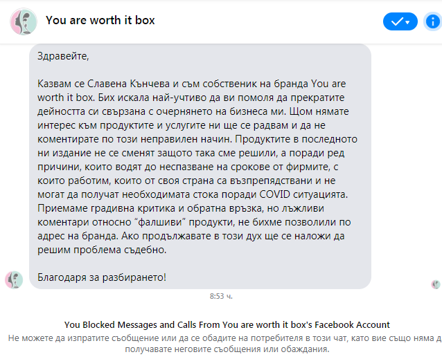 Jenny Shavarska, прочетох поста тук вечерта преди да пратят кутиите. Дори и да имах време да реагирам не мисля, че съм длъжна да го правя. Все пак следях страниците в соц. Мрежи за да видя нещо интересно, но нямаше. Повече и страниците им няма да следя. Далеч по-интересно са ми Кибрит, bellebox, good book, Марви и всички останали, които знаят как да се държат със своите клиенти. 🤗
