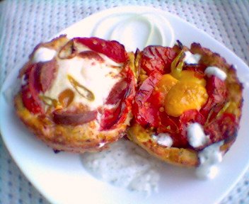 Снощи - кюфтета на скара, салата домати, чесново-кашкавалените питки по рецепта на Джема /голямо благодаря  Hug - това вече е любимият хляб на мъжа ми/, за десерт - понички