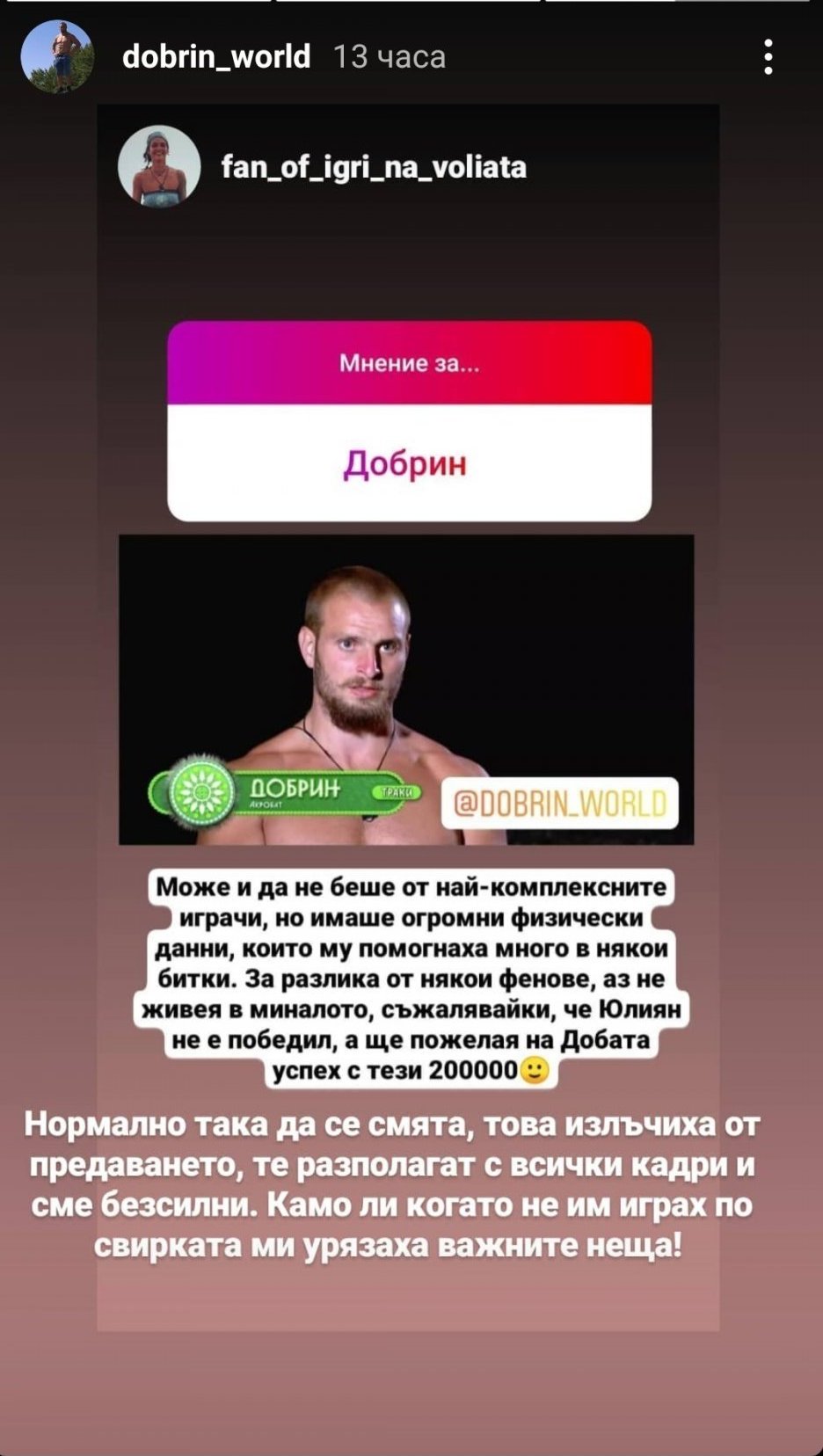 За съжаление по-големия процент гледащи и списващи за Игри на волята са точно от Биг брадър аудиторията, но това е положението харесва ли ни или не.