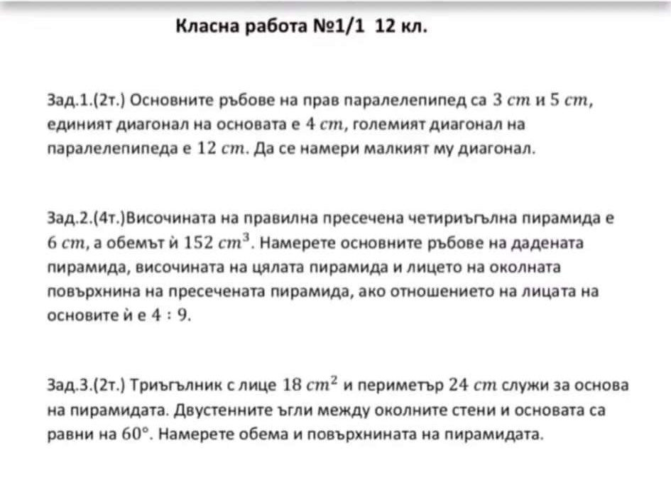 Здравейте, ако може малко помощ за задачите за 12 клас. Ако може 1ва задача, но и другите ще ми бъде от полза, която можете. Благодаря Ви предварително !